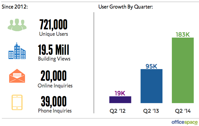 2012 and 2013 were record years for us over multiple metrics and 2014 seems to be on the same overall trajectory, if not better:OfficeSpaceUserGrowthOfficeSpace.com continues to be the premier destination for tenants that are actively looking for space.