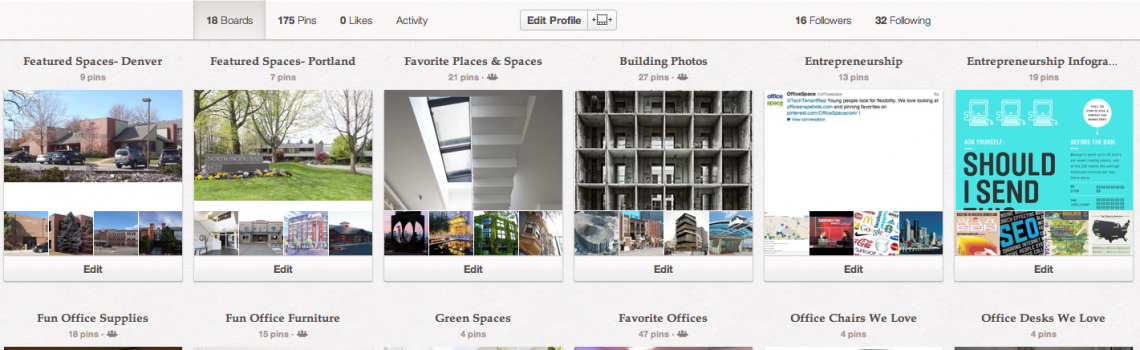 At OfficeSpace.com, we’ve been reading these articles promising success stories of Pinterest and we, too, have been pinning diligently. We developed a strategy and pinned our favorite offices, office supplies, furniture and photos of spaces featured on our own website.  We have 175 pins, 18 boards and 16 followers.  These just all seem to be numbers without meaning at this point and we keep having this discussion- so what?