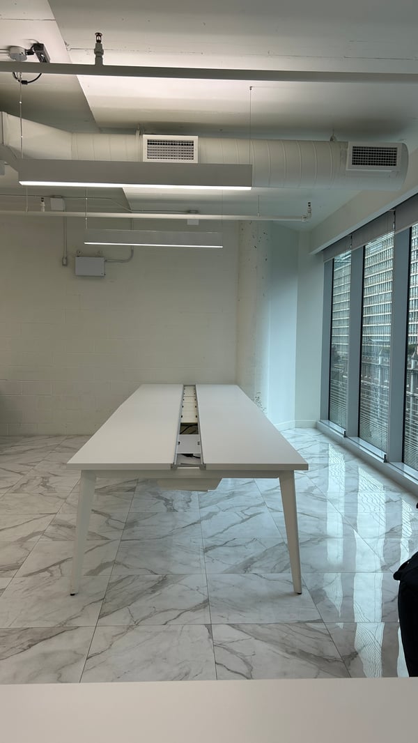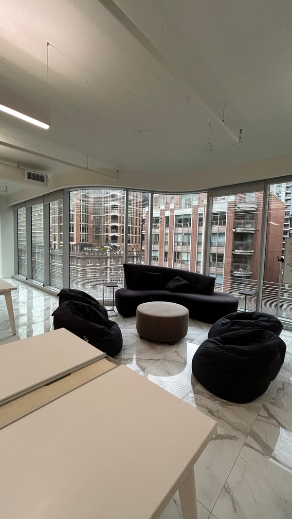 Yorkville offers a contemporary coworking environment designed to enhance productivity and comfort. Expansive floor-to-ceiling windows fill the space with natural light, complemented by modern marble floors and a crisp, minimalist design. High ceilings contribute to an airy, welcoming atmosphere ideal for both focused work and collaborative projects.