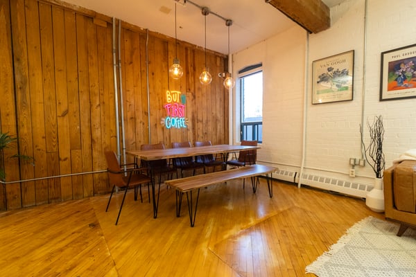 Situated in the vibrant core of Toronto, Squid Media offers a contemporary workspace designed to foster productivity and collaboration. The interior is bathed in natural sunlight from southwest-facing windows, providing inspiring views of the CN Tower and a welcoming atmosphere for both individuals and small teams.