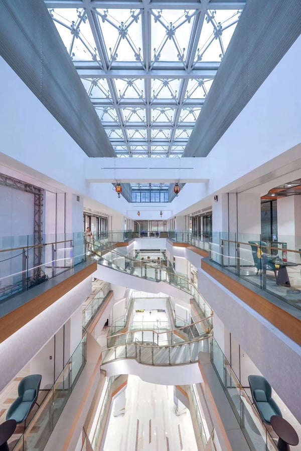Bridge+ sits in Xujiahui CBD, with office space for rent suitable for teams needing access to multiple metro lines. Xujiahui Station No. 2 is within walking distance, connecting to several subway routes. Regional train connections are also nearby. For travellers, SHA and PVG airports are both accessible by car. Daily commutes are supported by the mature local infrastructure. Nearby streets offer steady pedestrian flow and urban amenities.