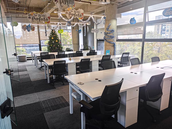 Tinkko places office space for rent near several transit options. Calle 92. - Cra. 30 allows for regional train connections, while DG 92 - AC 92 provides local bus access. El Airport is about 10 kilometers away for those traveling by air. Meeting rooms, cloud-based document management, and IP telephony are available on site. Outdoor areas and dining spaces support daily routines. Nearby, Virrey Park offers a green space for breaks.