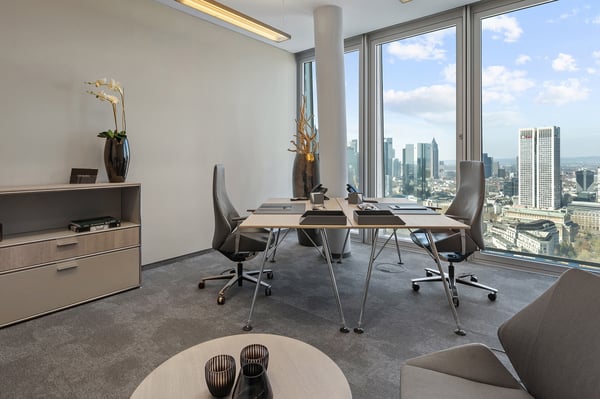 3 Spaces AvailableThis luxurious business centre is located in the heart of the city centre of Frankfurt, not far from the famous shopping street Zeil or hot-spots like the lively Schillerstraße, the Goetheplatz or the well-known Fressgass. Enjoy the amenities to have the dynamic main-metropolis at your feet: short distances to the shopping centre MyZeil, the hotel Jumeirah Frankfurt, the Fitness First Platinum Swim Club, the Talise Spa or the exclusive for the tenants of the building accessible sky terrace “TwentyFive”, which is perfect for your business meeting or also a short time-out. Directly beneath the building you’ll find the largest and probably most comfortable underground parking garage of Frankfurt which offers you several exclusive and public parking possibilities. Of course the location in the city centre is also offering an excellent infrastructural connection to Frankfurt main station, Frankfurt airport or the suburbs.