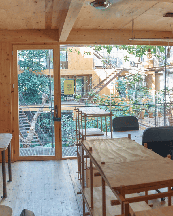 Nest offers an inspiring workspace set within a thoughtfully restored warehouse in Barcelona’s vibrant district. Abundant natural light, greenery including a micro forest, and innovative design elements create an environment that encourages collaboration and well-being. This workspace is particularly well-suited for freelancers, entrepreneurs, and small teams in fields such as sustainability, architecture, design, wellness, and social innovation.