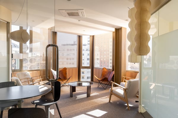 The space features private offices, advanced meeting rooms, and virtual office solutions, all enhanced by abundant natural light and acoustic comfort to boost productivity. Located in the heart of Barcelona, it provides a prestigious address and a sophisticated setting for professionals seeking a serious and functional workspace.