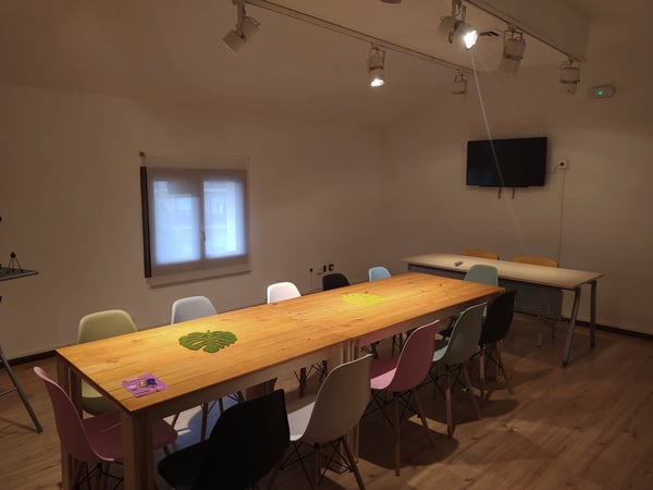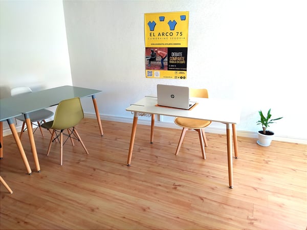 Members benefit from convenient amenities including free parking, printing services, and a stocked refreshment area with beverages and snacks. Additional features such as a dedicated phone booth and a comfortable relaxation zone enhance the workday experience, making this location a practical and welcoming choice for professionals in Segovia.