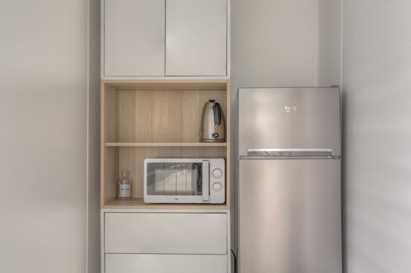 The space is filled with natural light, enhanced by glass partitions that create an open and welcoming atmosphere. Flexible meeting facilities are available, including a bright room that can be arranged to suit various needs, making it an ideal setting for productive collaboration and business gatherings.