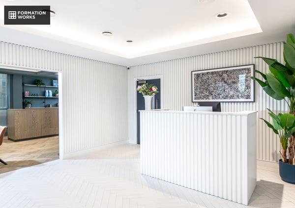 Formation Works offers newly refurbished office suites designed to accommodate a range of business sizes and requirements. The contemporary interiors are complemented by thoughtfully designed shared amenities, including a welcoming reception, dining area, meeting rooms, and on-site parking.