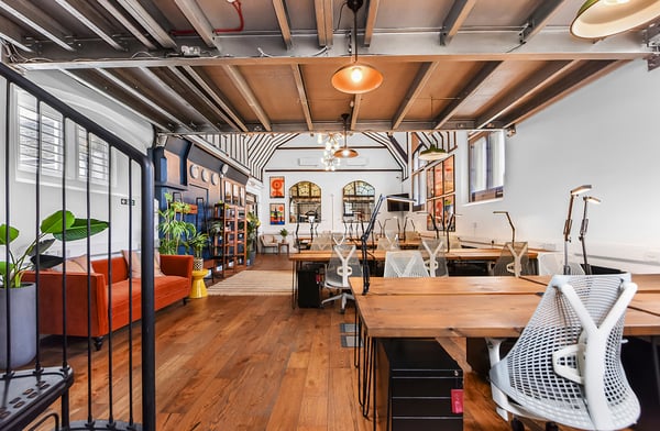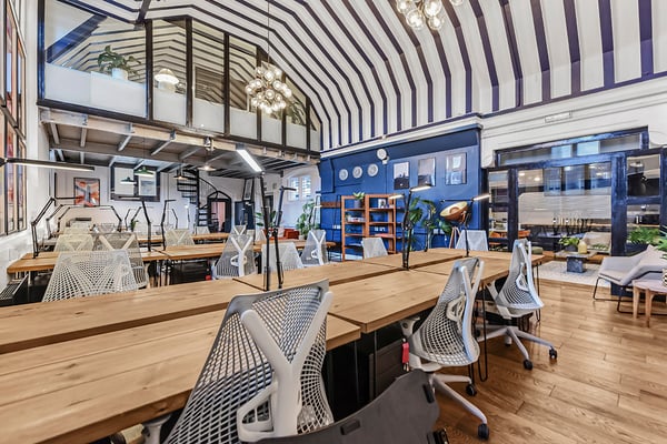 Occupying the top floor of a beautifully converted Victorian school, this workspace offers a unique blend of historic character and contemporary functionality. Soaring triple-height vaulted ceilings and generous natural light create an inspiring atmosphere, complemented by striking period features throughout.