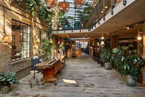 Members benefit from a well-equipped library, phone booths, a podcast studio, and professional concierge support. The vibrant calendar of community events, including wellness sessions and networking lunches, fosters both productivity and connection. Located in a distinctive Hackney landmark, the interiors blend industrial elements with a refined, neutral aesthetic, providing an inviting setting for collaboration and growth.