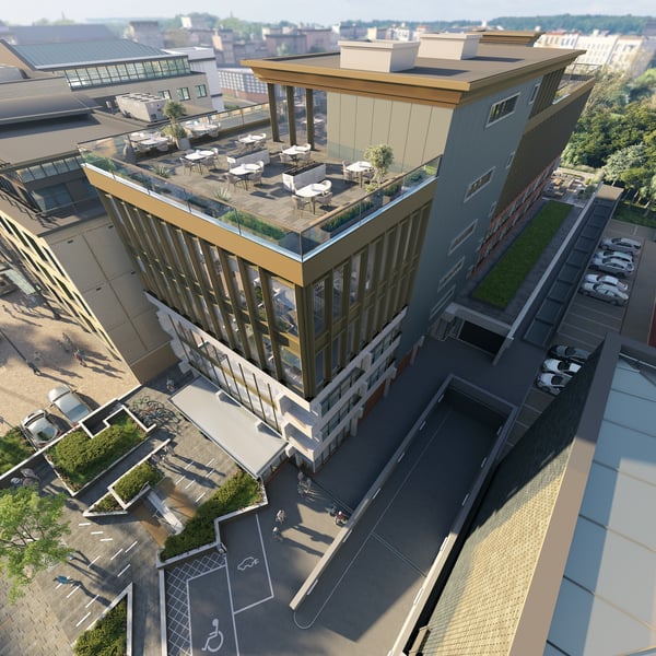 Hub offers a modern, design-focused workspace in Watford’s main office district, ideally positioned between Watford Junction Station and the vibrant high street. This contemporary building is designed with sustainability in mind, aiming for both BREEAM Excellent and an A-rated EPC, reflecting a strong commitment to environmental performance.