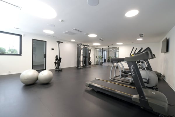 A comprehensive wellness suite features a gym, massage room, meditation area, and showers, supporting a balanced workday. The serene, modern setting creates a productive environment for both coworking and private office needs, making it an excellent choice for professionals seeking flexibility and a focus on well-being.