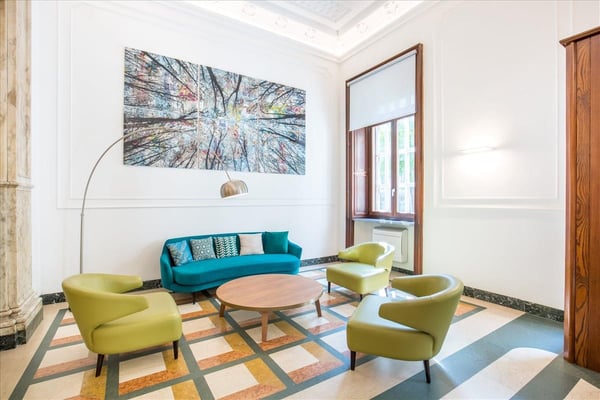 Set within a distinguished historical palazzo in Turin, Copernico offers a unique blend of classic elegance and modern workspace design. The interiors feature impressive frescoed ceilings, stately wooden doors, and granite columns, creating a bright and inspiring environment ideal for focused productivity. Abundant natural light and dynamic open spaces foster a welcoming atmosphere for teams of all sizes.