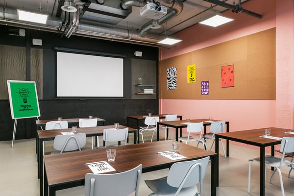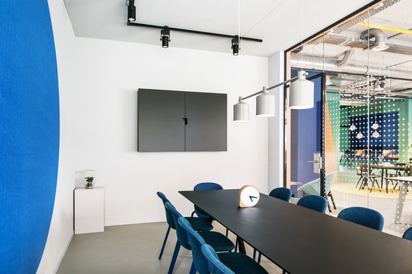 Social Hub offers a dynamic workspace designed to help teams collaborate and succeed. The flexible layout includes coworking areas and private offices, complemented by an array of bright meeting rooms and inviting breakout zones ideal for both focused work and creative sessions. Large windows fill the space with natural light, fostering a productive and energizing environment.