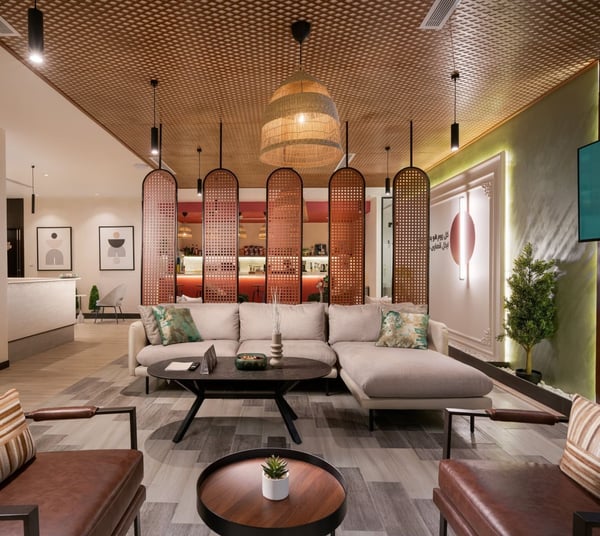 The workspace features striking architecture and a modern, international design, making it an impressive choice for businesses seeking a dynamic office setting in Jeddah. Its blend of elegant finishes and industrial materials creates a refined yet energetic atmosphere ideal for both coworking and serviced office solutions.