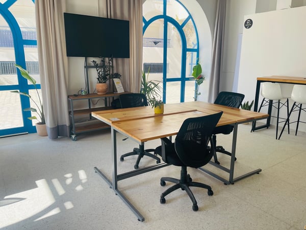 2 Spaces AvailableThe Neighborhood: Where Work Meets the Seaside Our coliving-coworking space is perfectly nestled in Djerba's prime Tourist Zone, offering an unbeatable blend of professional convenience and island charm. What truly makes our location special is its proximity to the Mediterranean: you are just a 5-minute walk from the stunning sandy beaches, making a refreshing swim a reality during your lunch break. This immediate access to the seaside transforms your routine and elevates your Work-Life Balance. For your daily needs and social life, the neighborhood is rich with amenities: Fresh Ingredients: The Jazira Market is conveniently located just a 5-minute walk away, perfect for picking up fresh local produce and ingredients for your meals in our communal kitchen. Dining and Socializing: The vibrant Palm Djerba Café Restaurant is nearby, offering a lively atmosphere, delicious food, and a great spot for evening relaxation or a brunch meeting. Local Exploration: Getting around is easy. You can reach Midoun Centre—the island's bustling commercial and cultural hub—in just 10 minutes by car. Cultural Excursions: The historic capital, Houmt Souk, with its traditional markets and beautiful architecture, is only 15 minutes away. Here, you're not just renting a desk; you're gaining access to a lively community and an idyllic environment, all while being perfectly connected to key island destinations.